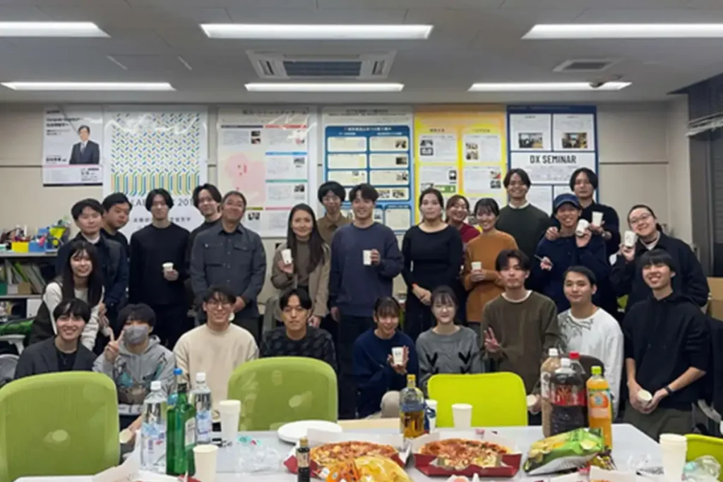 - 2025年度B3新歓!秋学期から、11人の3年生がMDGに入ってくれたので、新歓を行いました。これからみんなで研究を頑張っていきましょう! 集合写真 新歓の様子