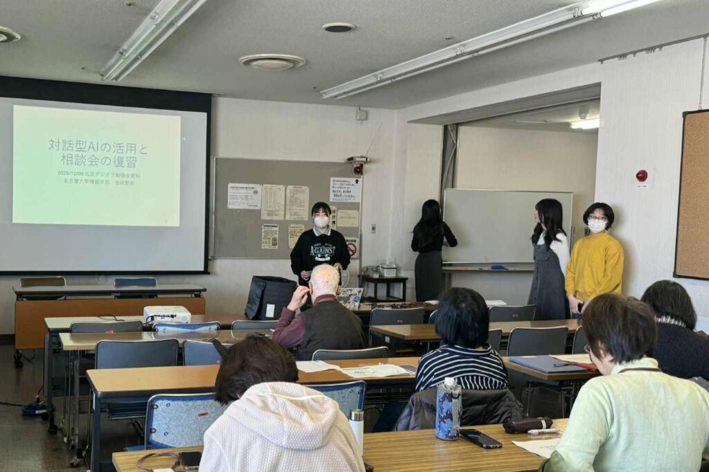 - 第39回北区デジタル支援ボランティア向け勉強会を実施しました。令和7年12月9日、名古屋市北区役所にて、第39回北区デジタル支援ボランティア向け勉強会を実施しました。 今回の勉強会では、生成AIを活用し「デジタルに関す …