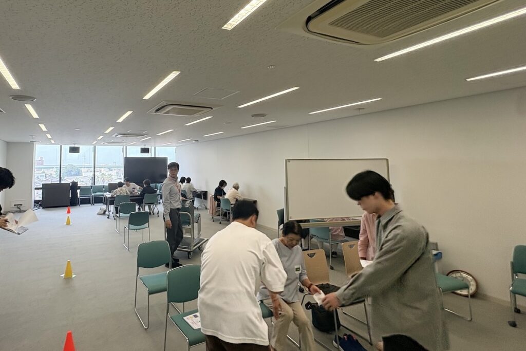 10月1日、10月10日に小牧市にて、対話システムの実験参加者となる高齢者の方に実験の説明を行いました。90名ほどの参加者の方々に参加いただきました。実験説明の他にも、医学部の先生からの健康講座や健康測定、そしてタブレットとFitbitの貸出を行いました。