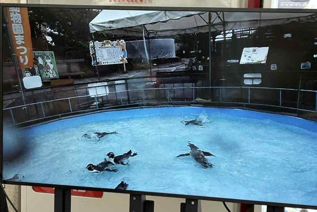リアルタイム配信による「飼育員視点」の共有にデジタルカメラとサイネージを無線で接続し、映像をリアルタイムで投影する実験を行いました。