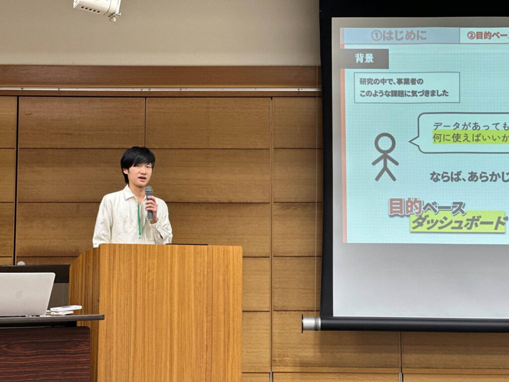 続いて、飛騨高山高校の生徒がMDGと連携した取り組みを紹介し、B4若松さんが歩行者数データを可視化するダッシュボードを紹介しました。