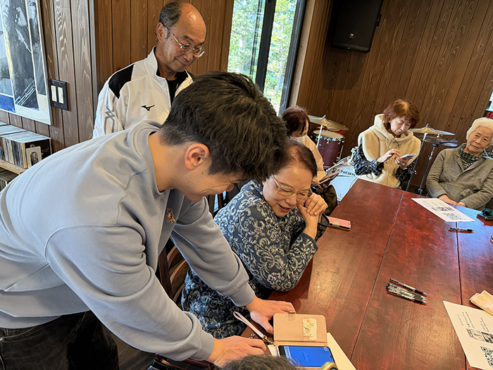 相談会では、スマホ相談会に参加している高齢者の方を対象にスマホゲームを体験していただきました。